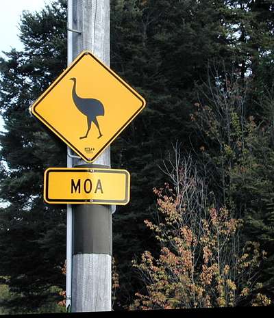 old sign. The moa have been extinct for hundreds of years.